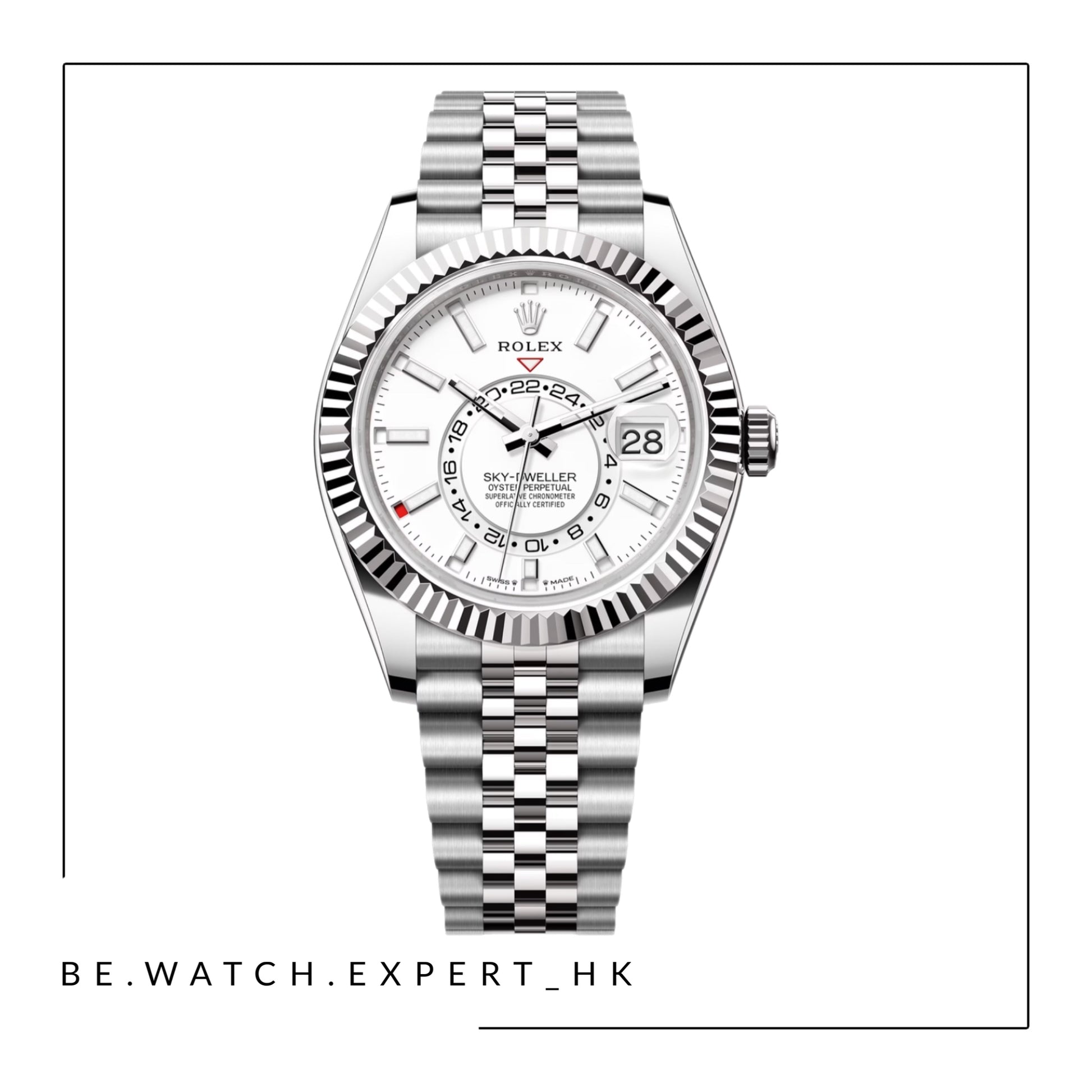 白色黃金及蠔式鋼款,搭配醇白色錶面及紀念型(Jubilee)錶帶