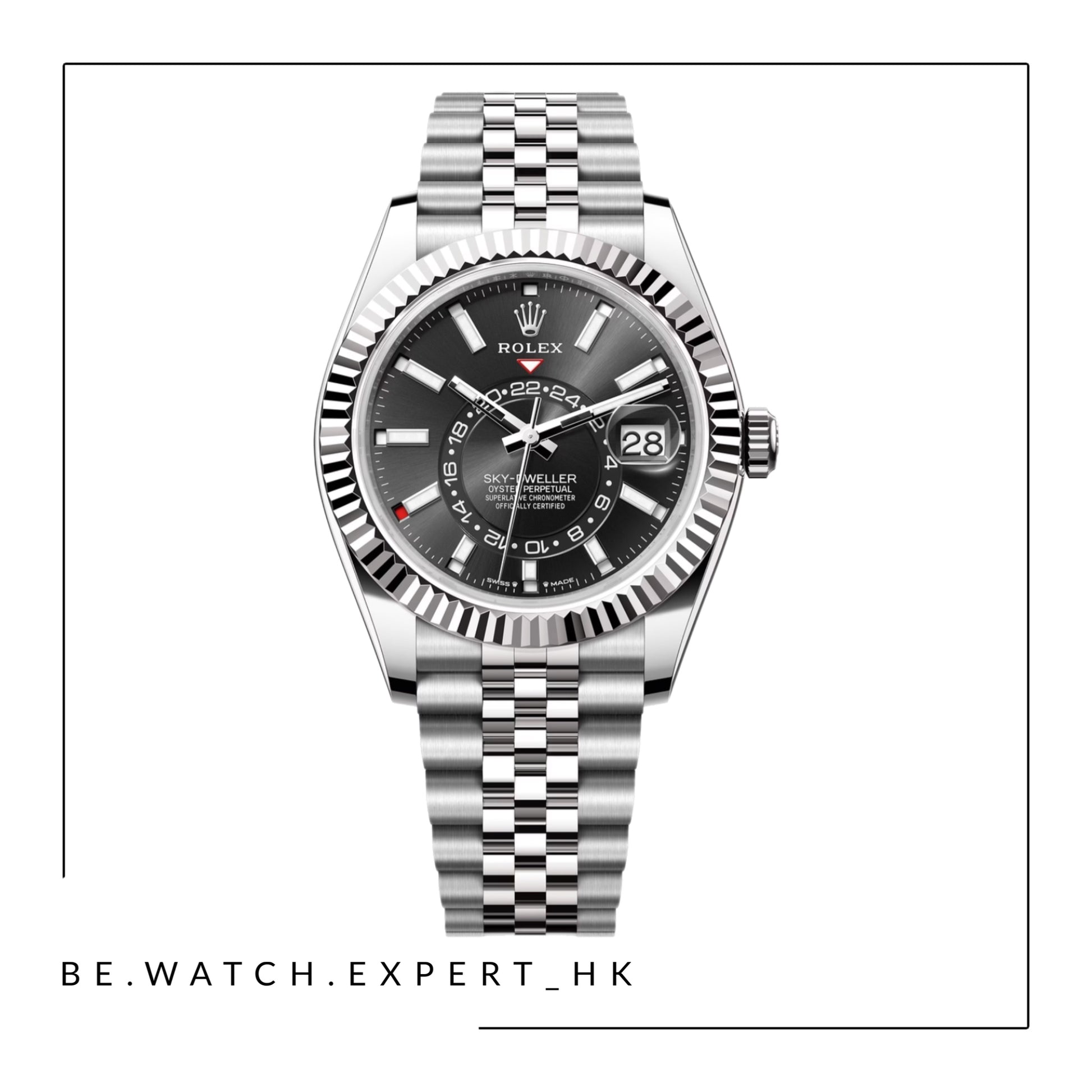 白色黃金及蠔式鋼款,搭配亮黑色錶面及紀念型(Jubilee)錶帶