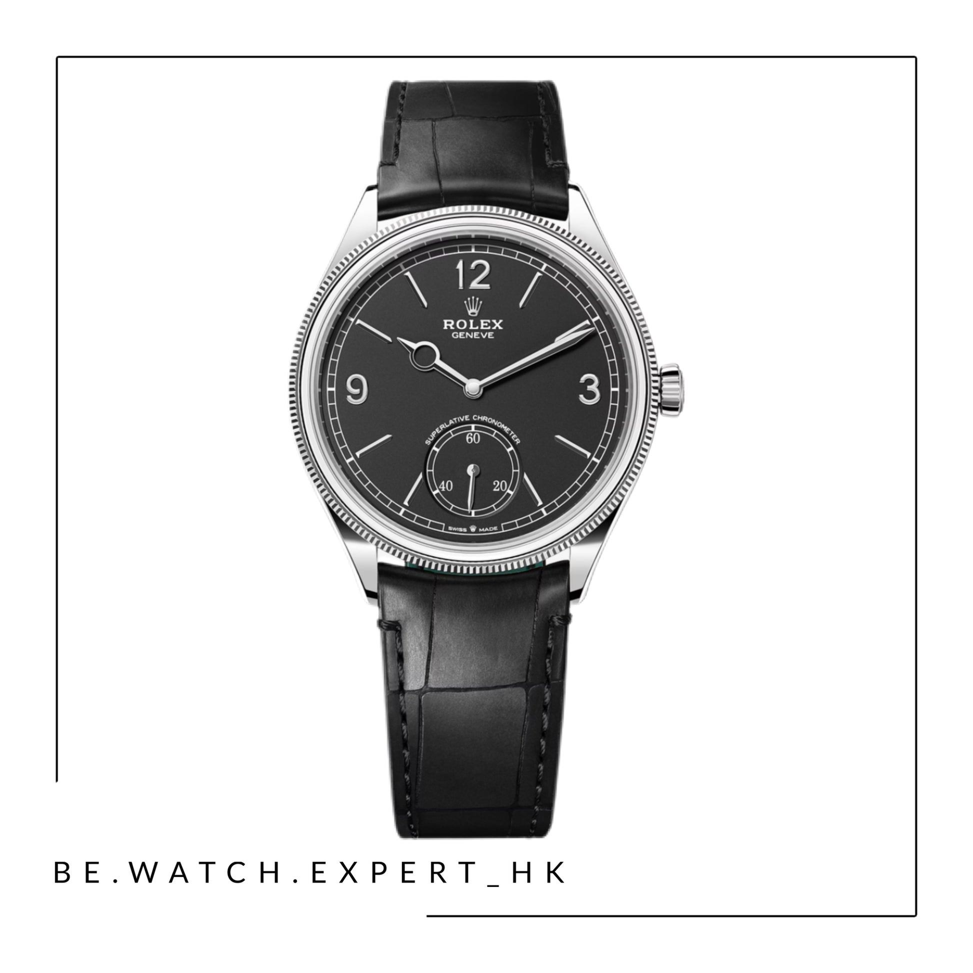 18K白色黃金39毫米錶殼及鱷魚皮錶帶