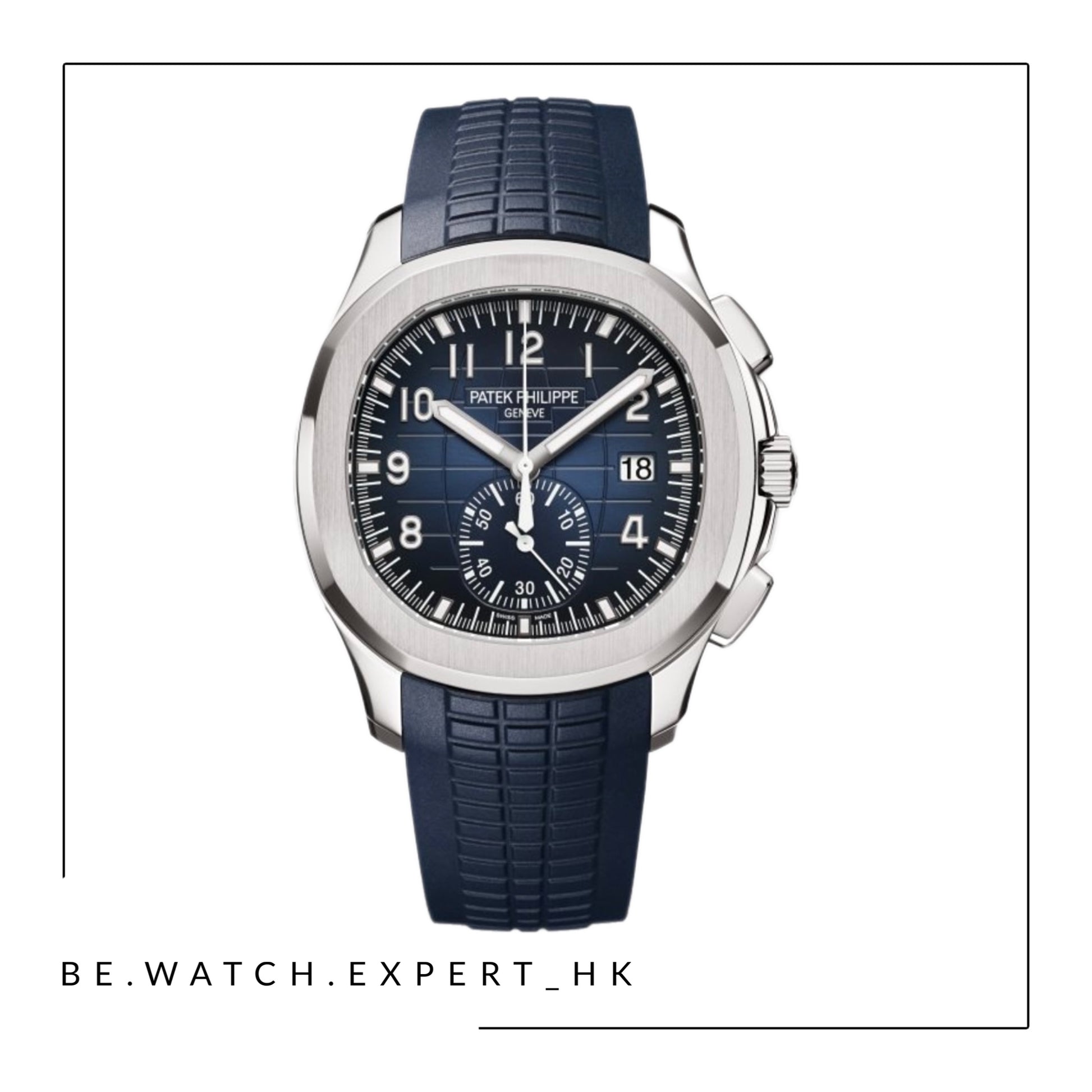 • Blue, black-gradient dial , embossed with Aquanaut pattern