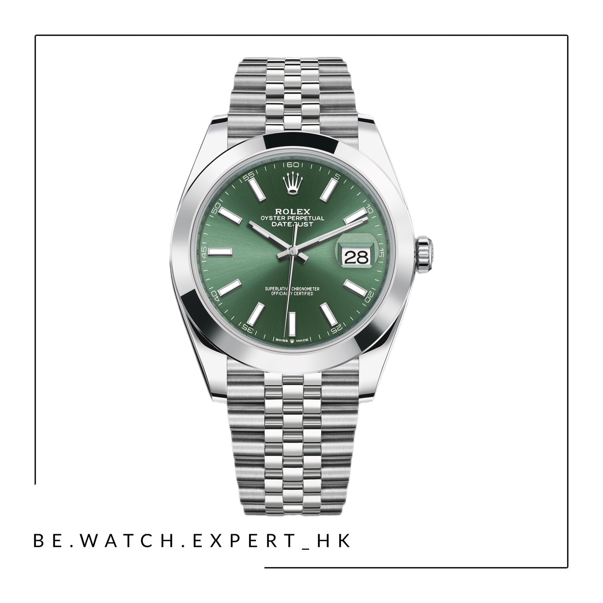 蠔式鋼款,搭配薄荷綠色錶面及紀念型 (JUBILEE)錶帶
