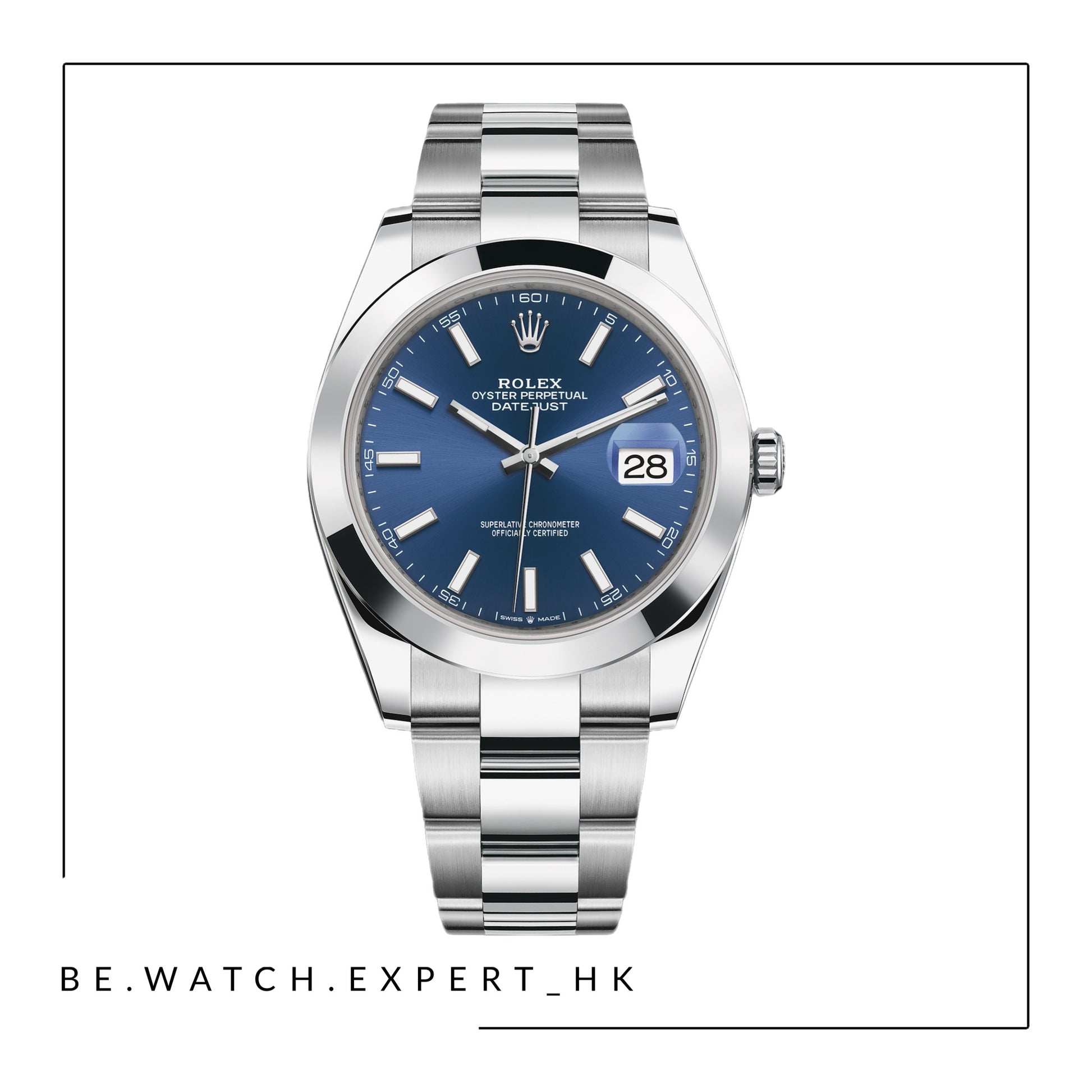 蠔式鋼款,搭配亮藍色錶面及蠔式錶帶