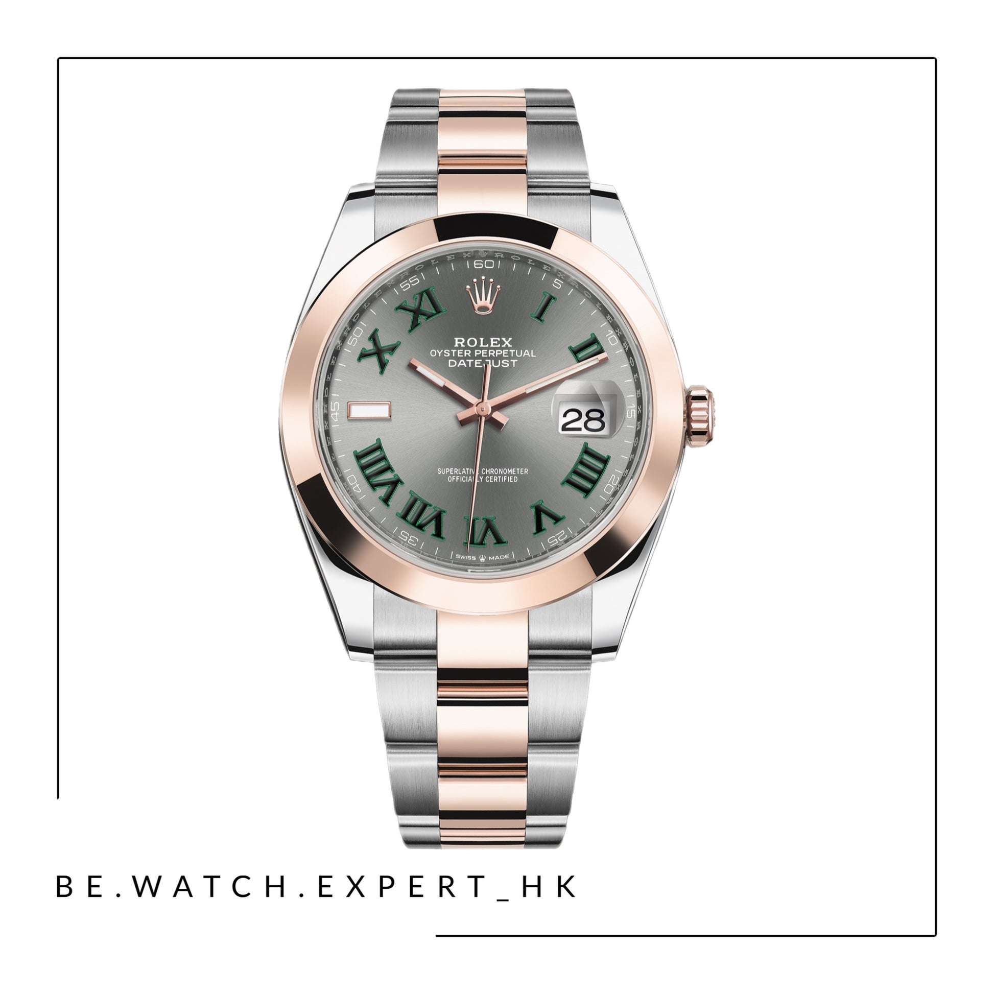 永恒玫瑰金及蠔式鋼款,搭配石板灰色錶面及蠔式錶帶