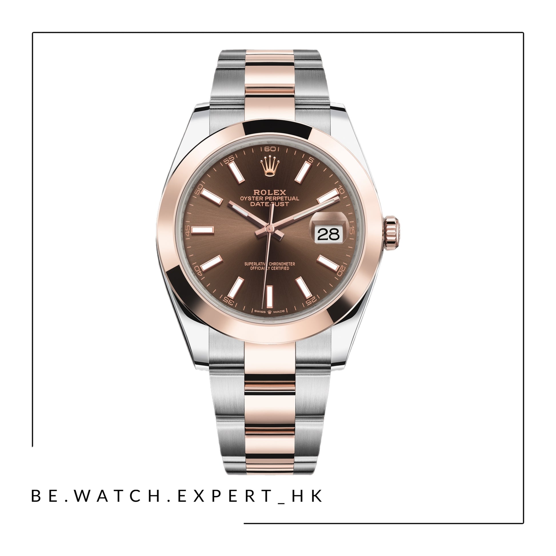 永恒玫瑰金及蠔式鋼款,搭配巧克力色錶面及蠔式錶帶