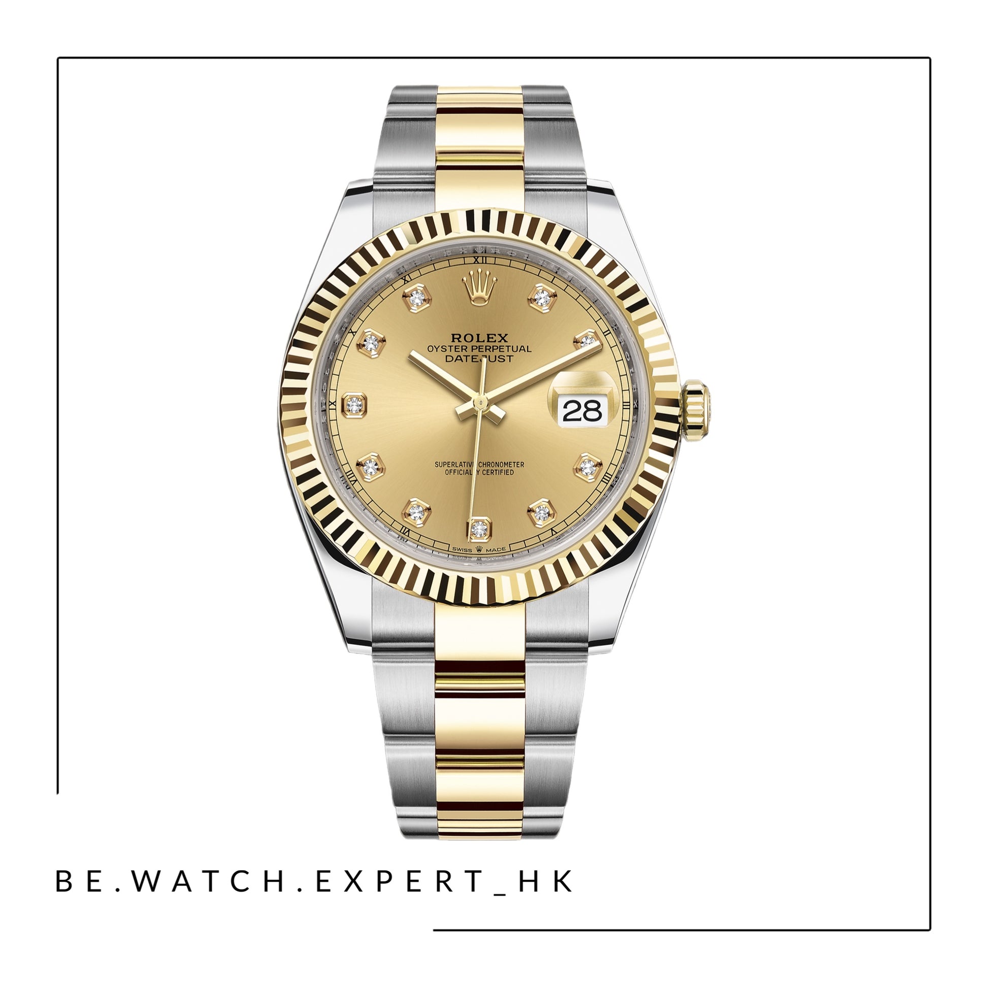黃金及蠔式鋼款,搭配鑲鑽香檳色錶面及蠔式錶帶