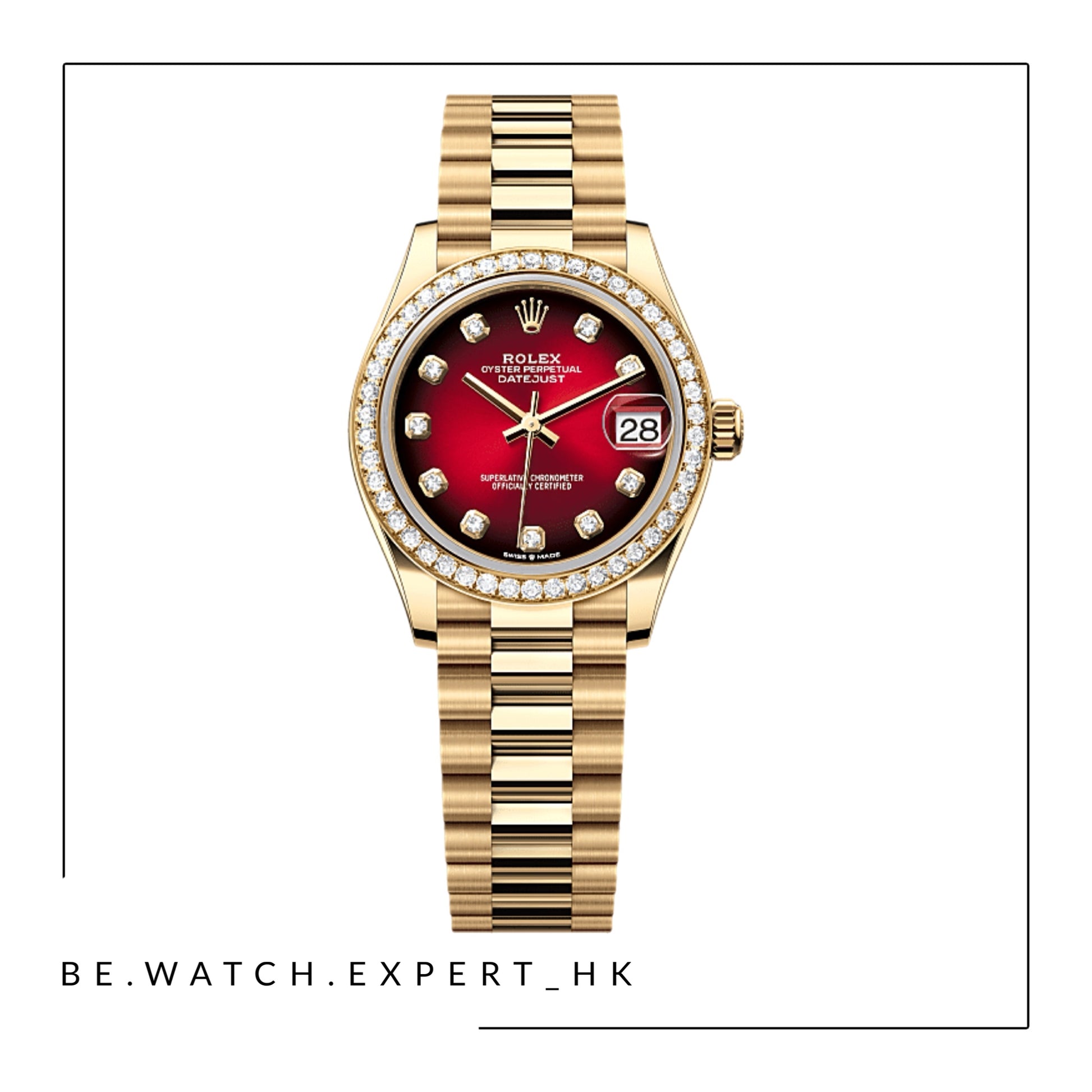18K黃金款,搭配漸變紅色鑲鑽錶面及元首型