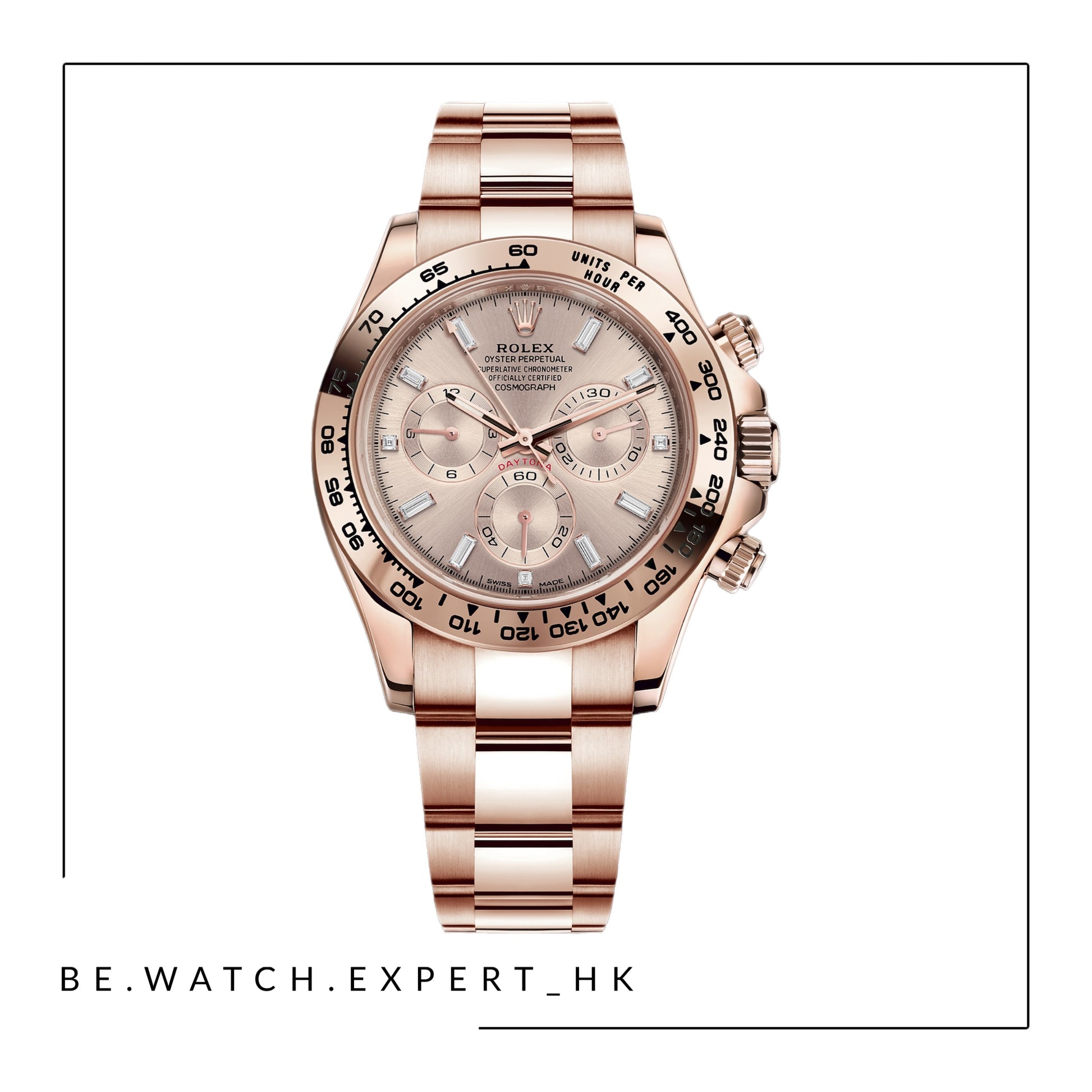 18K永恒玫瑰金款,搭配鑲鑽日亮金色錶面(SUNDUST DIAL)