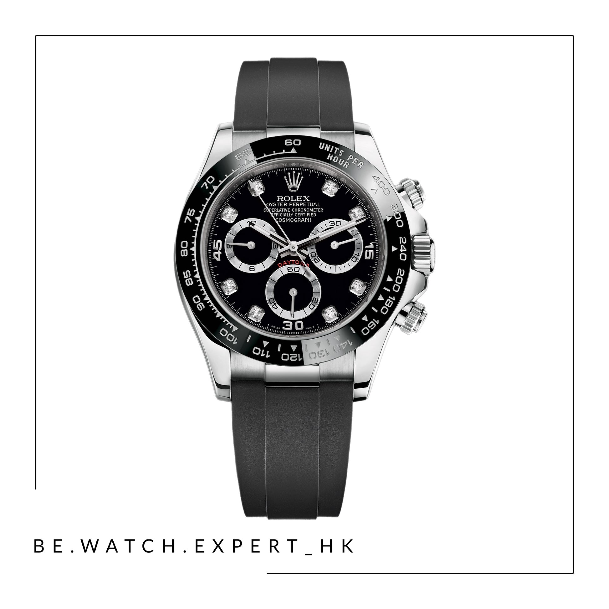 18K白金款,鑲鑽黑面,黑色CERACHROM外圈