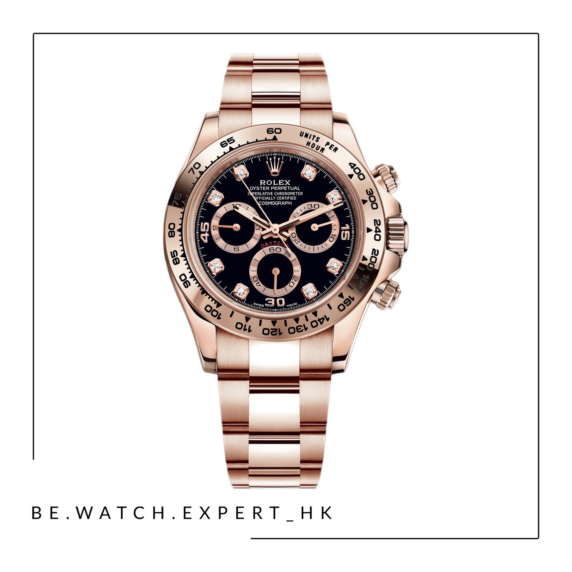 18K永恒玫瑰金款,搭配鑲鑽黑色錶面