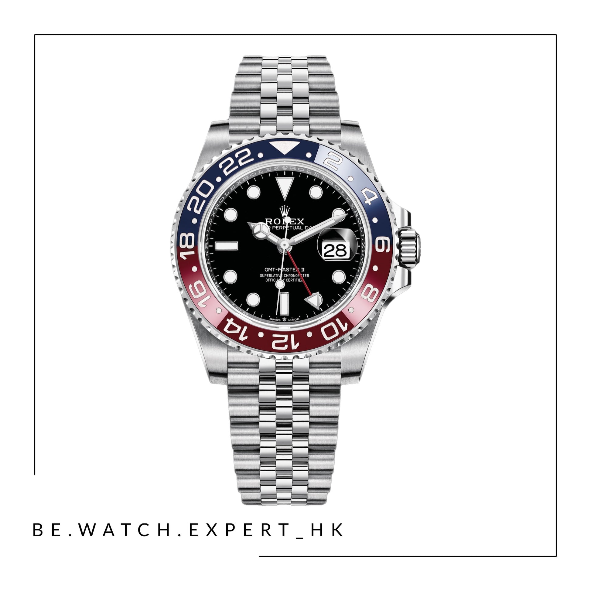 蠔式鋼款,搭配紀念型(JUBILEE)錶帶,紅藍雙色Cerachrom陶質字圈
