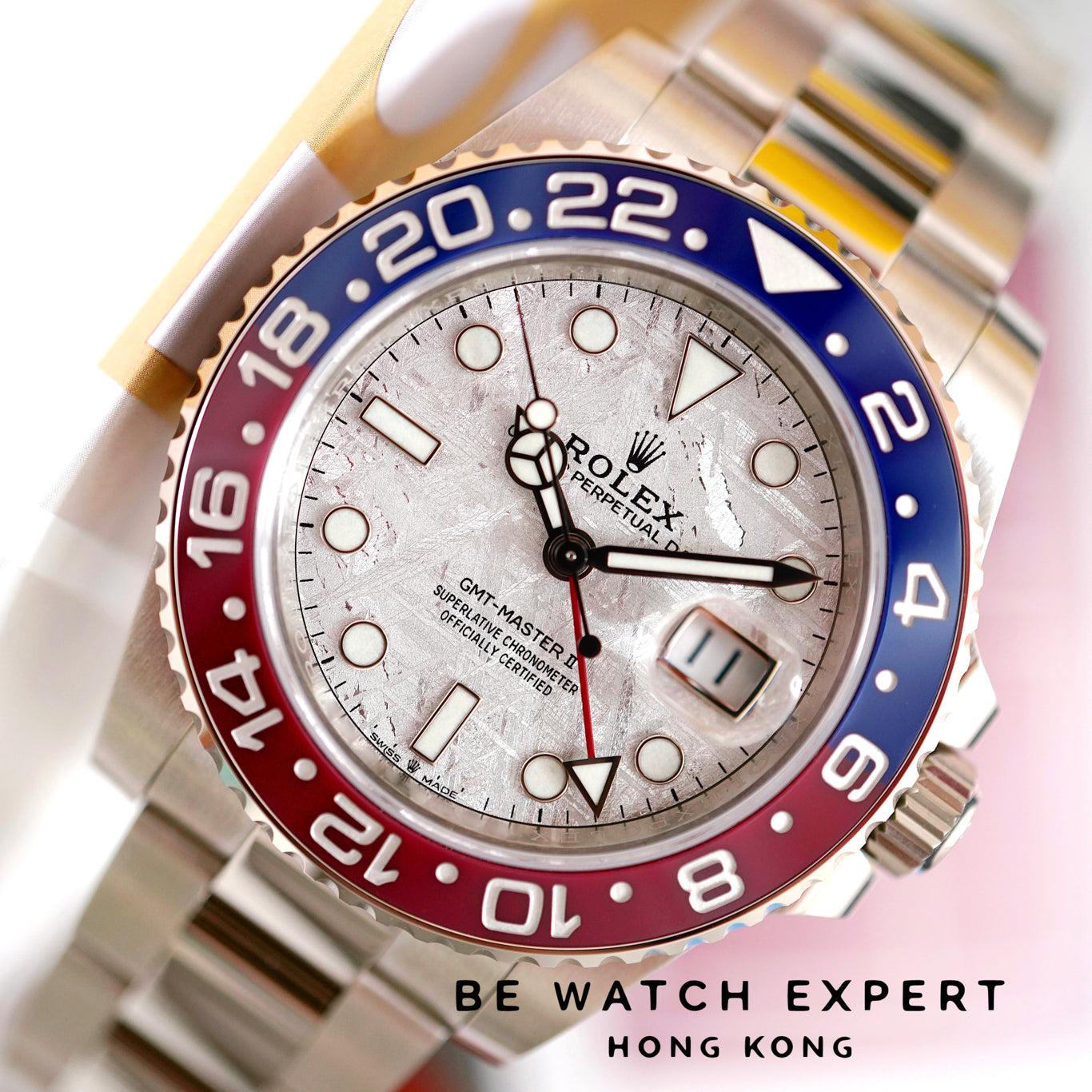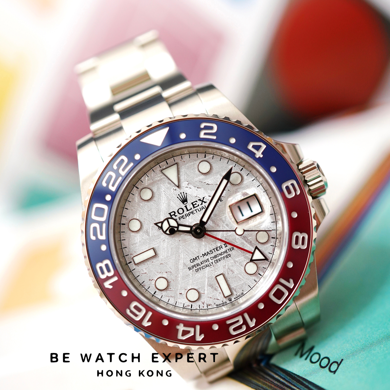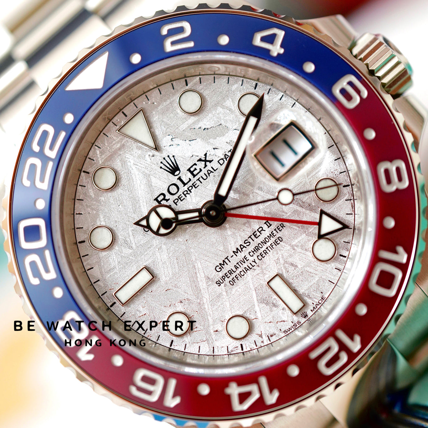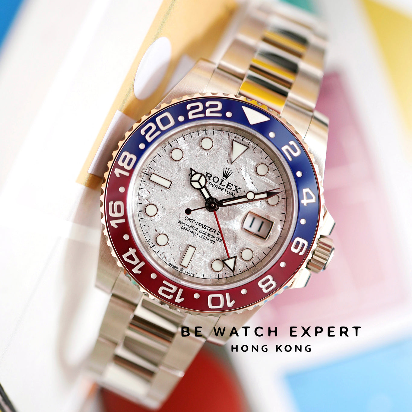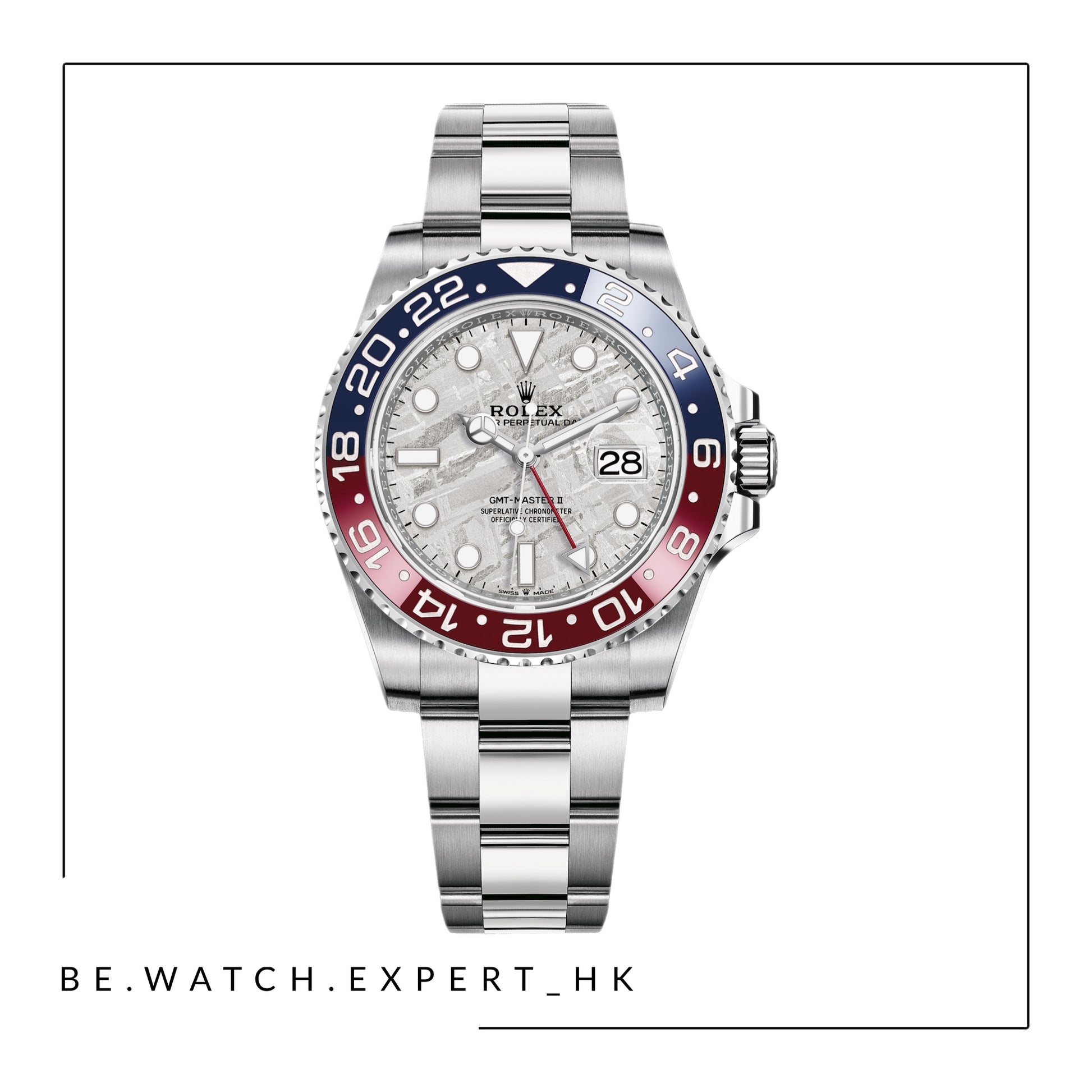 18K白金款,搭配蠔式錶帶,隕石(Meteorite)錶面