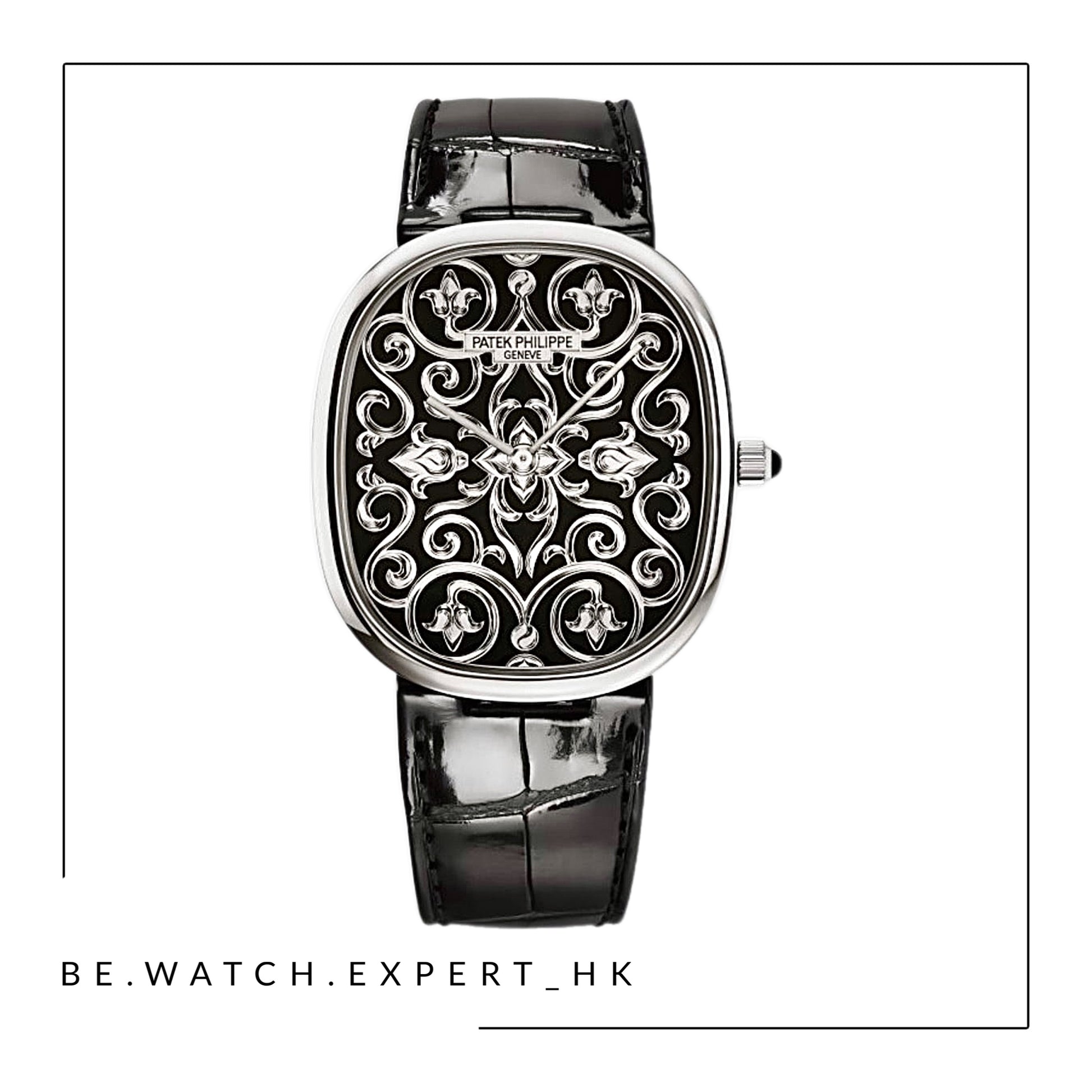 • Dial : Hand-engraved and black enameled. 18K gold dial plate