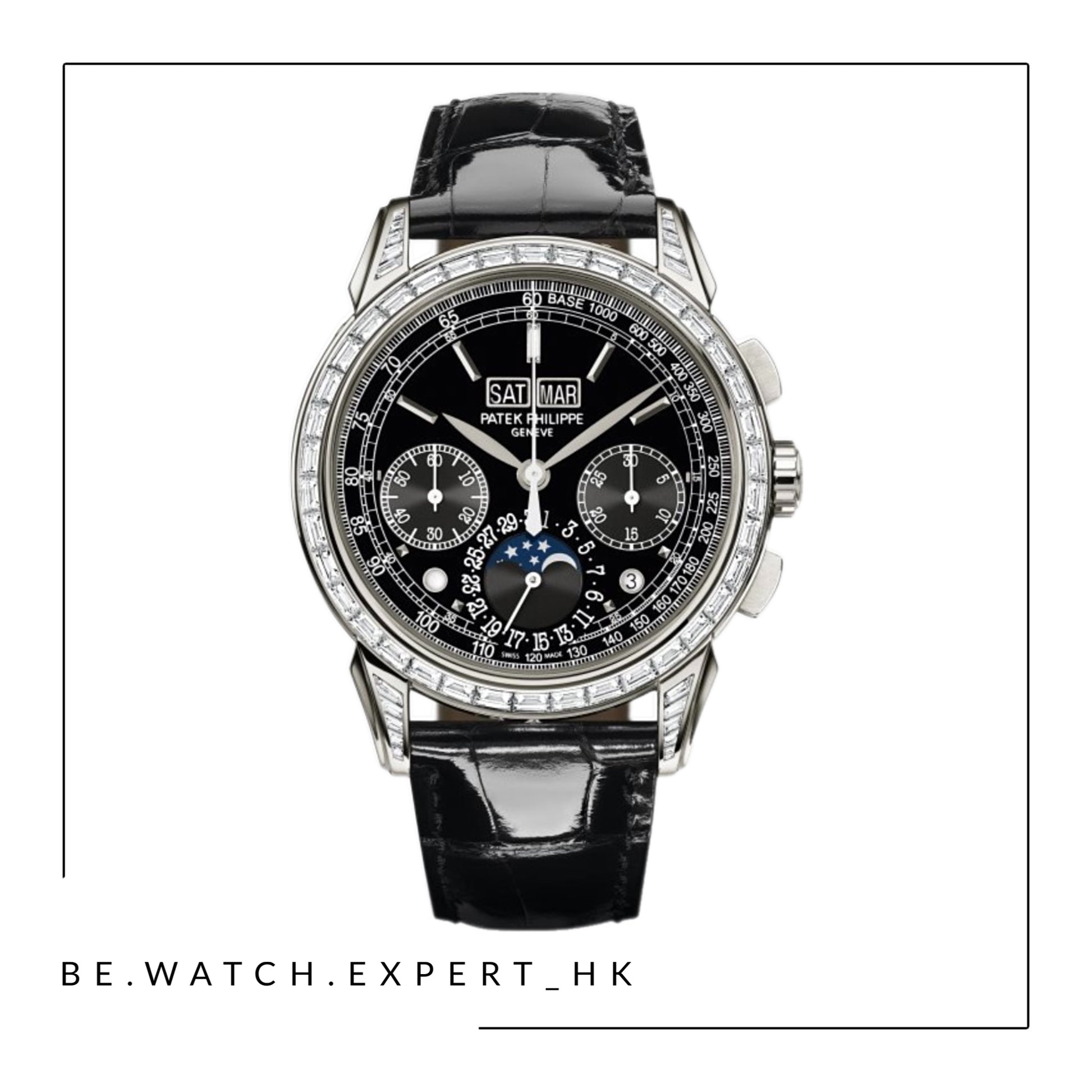 • Bezel and lugs set with 58 baguette diamonds (~3.63 ct). Fold-over clasp set with 22 baguette diamonds (~0.97 ct).