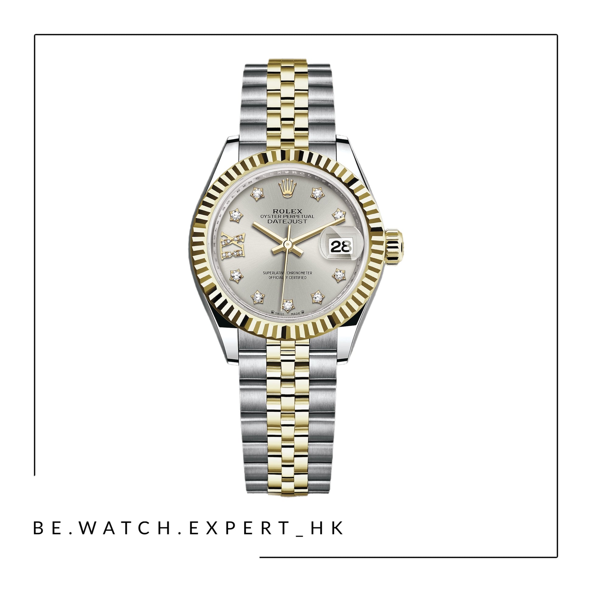 黃金及蠔式鋼款,搭配鑲鑽銀色錶面及紀念型(JUBILEE)錶帶