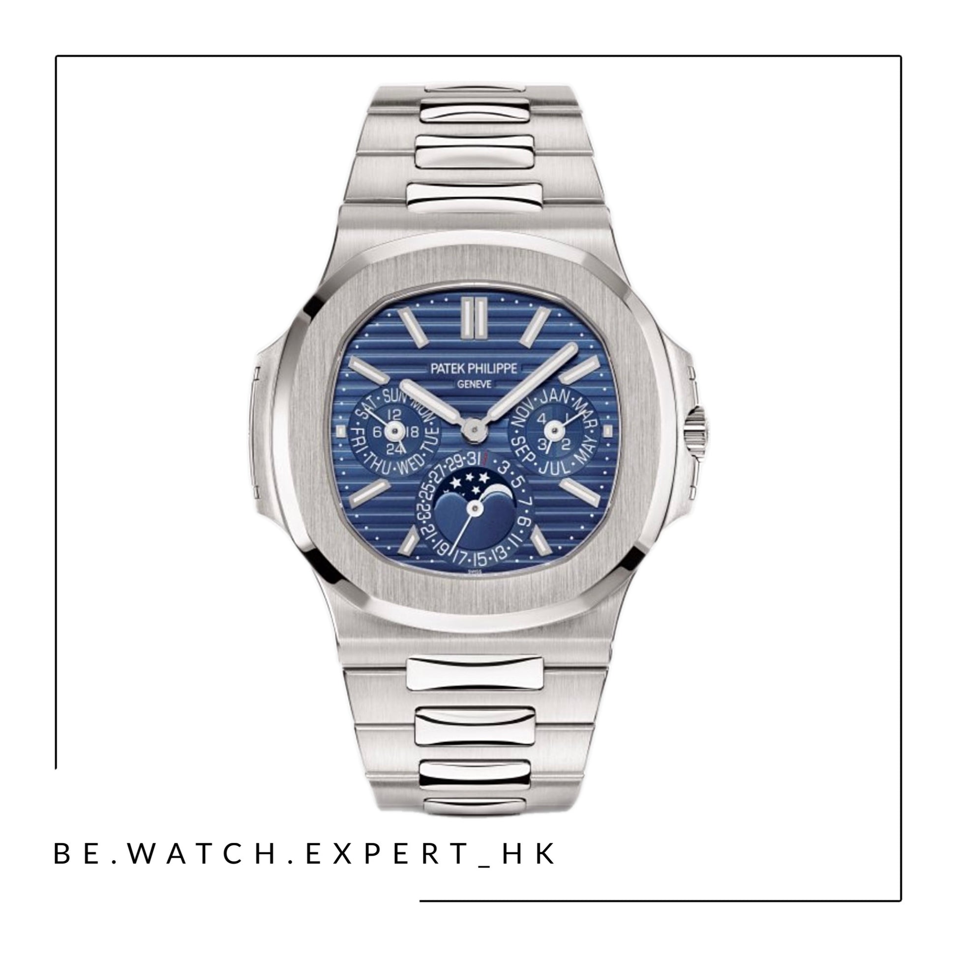 • Perpetual calendar. Day, date, month, leap year and 24-hour indication by hands. Moon phases