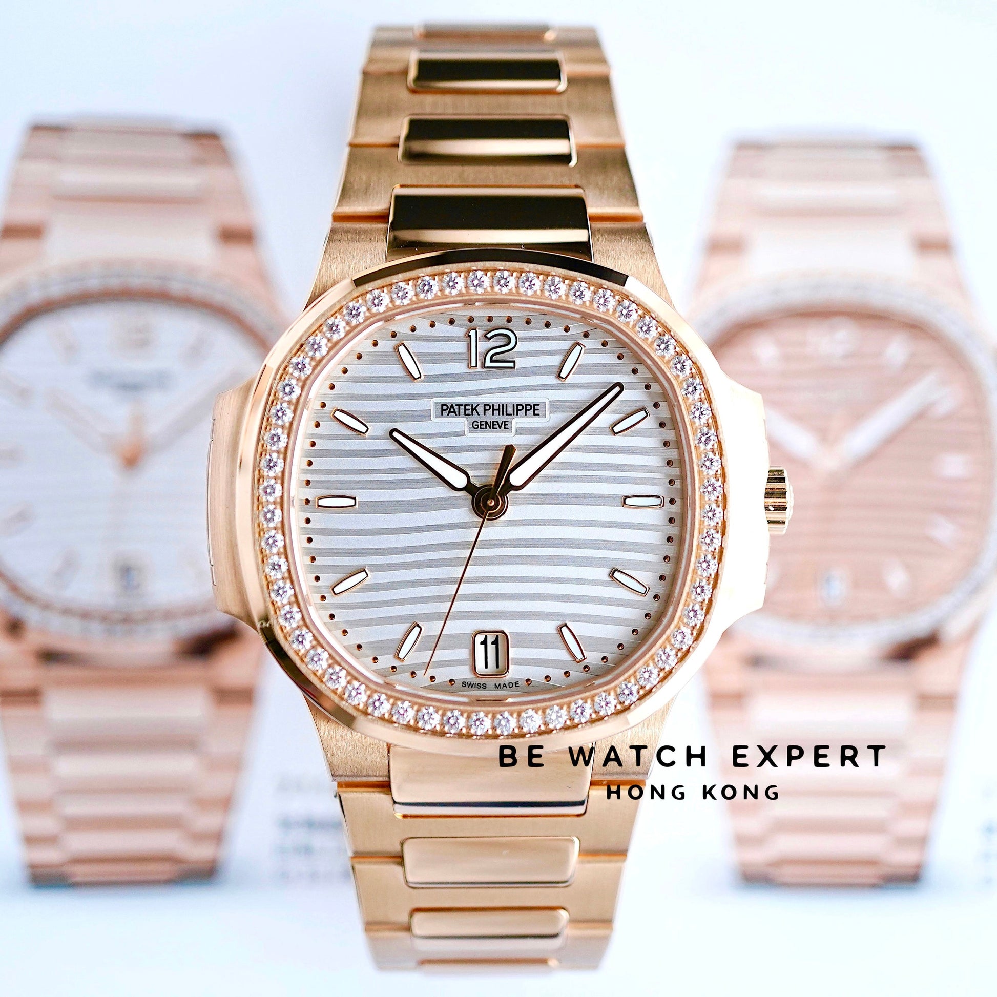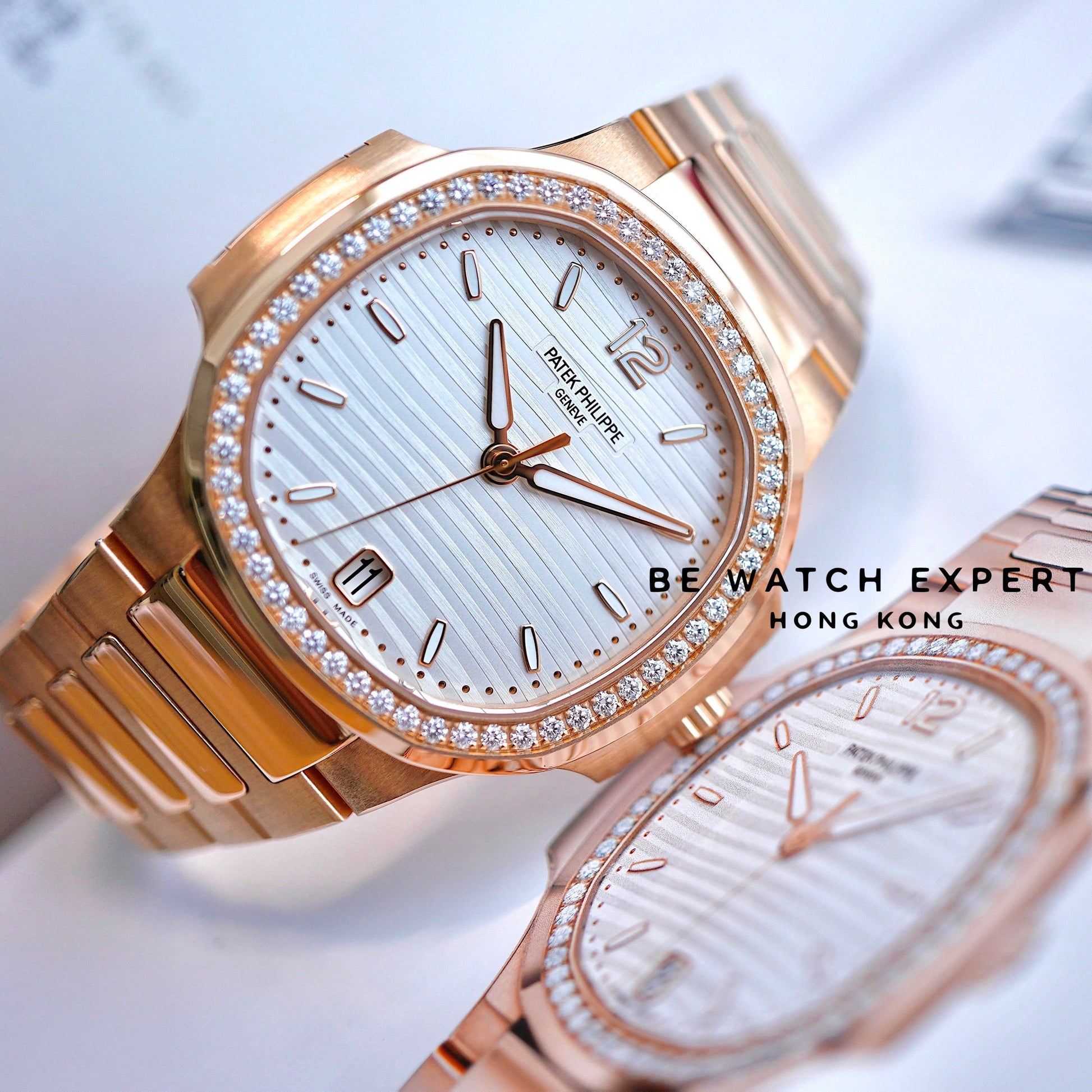NAUTILUS Self-winding Silvery opaline dial with diamond bezel