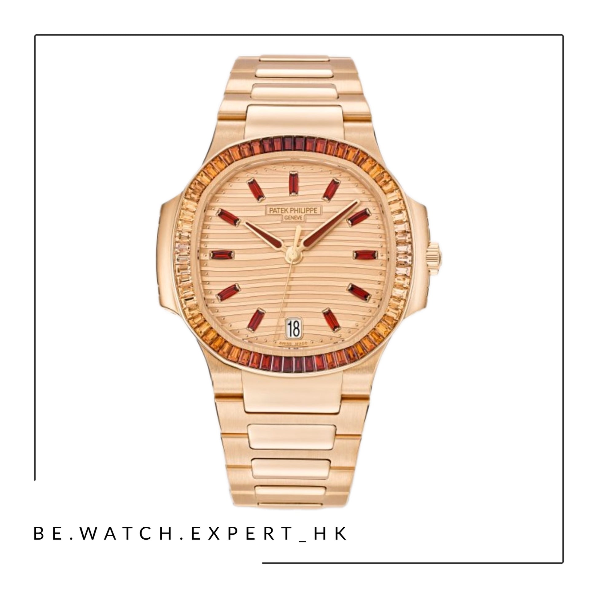 • 11 ogival-shaped cognac-colored spessartites: 0.34 ct. (hour markers)