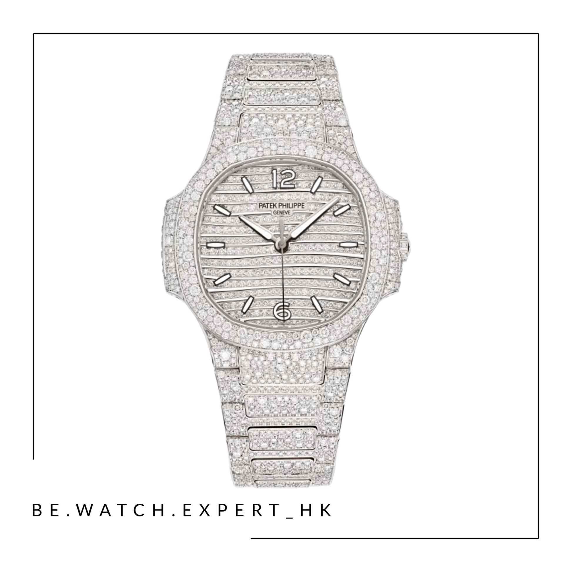 286 diamonds: ~0.92 ct. (dial). 518 diamonds: ~2.52 cts. (case). 20 diamonds: ~0.03 ct. (crown). 1729 diamonds: ~9.22 cts. (bracelet). Total of 2,553 diamonds: ~12.69 cts.
