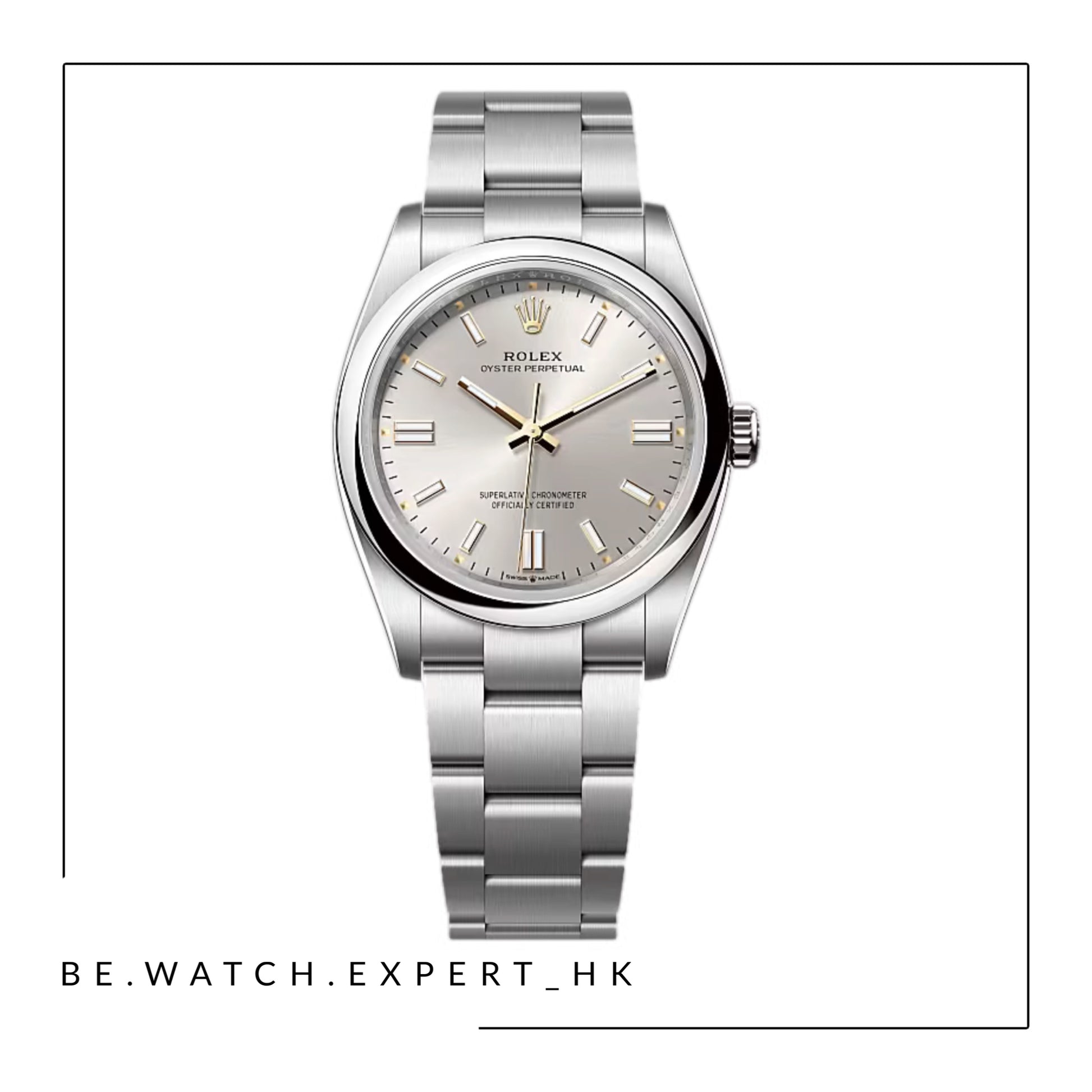腕錶搭配銀色錶面及蠔式(Oyster)錶帶