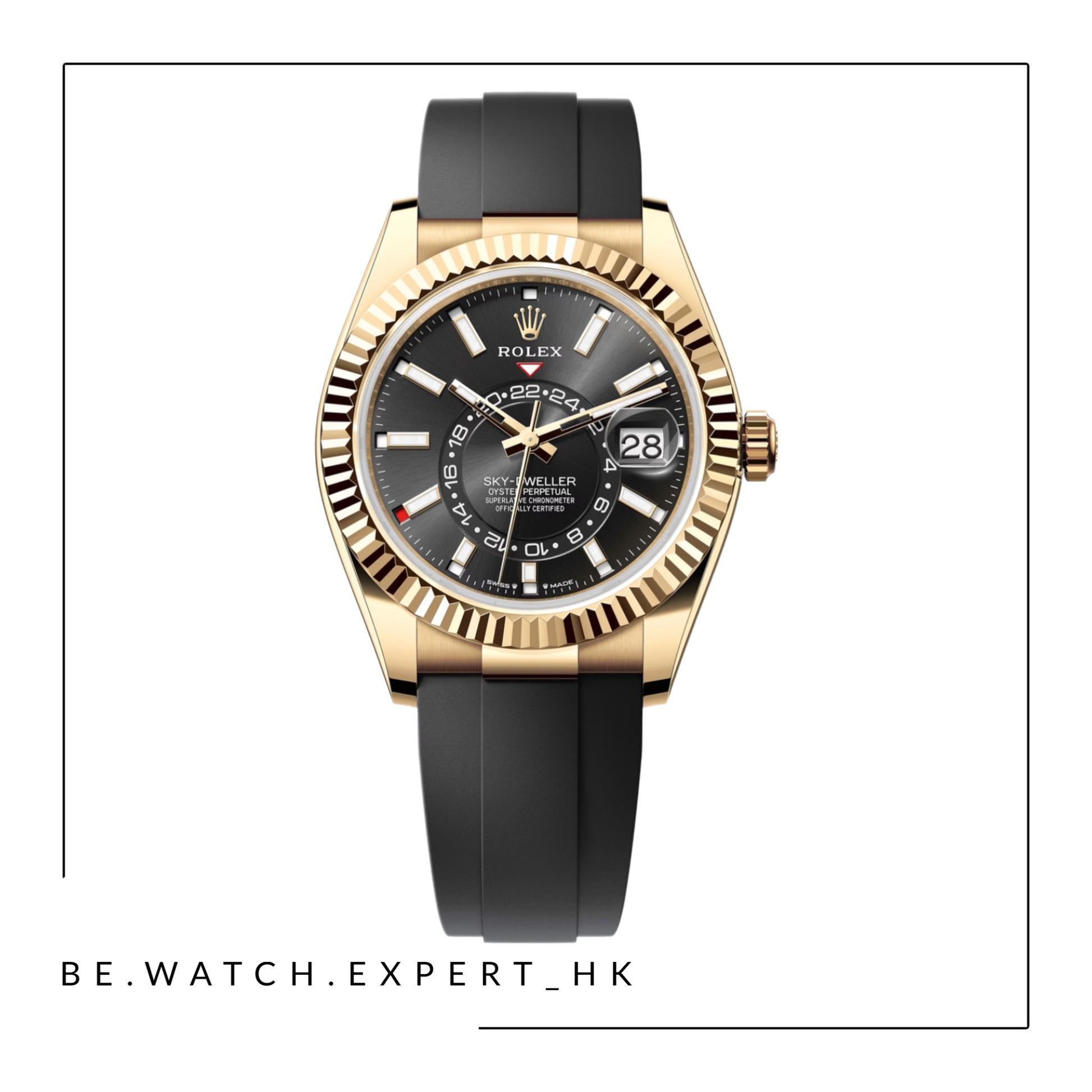 18K黃金款,搭配亮黑色錶面及Oysterflex錶帶