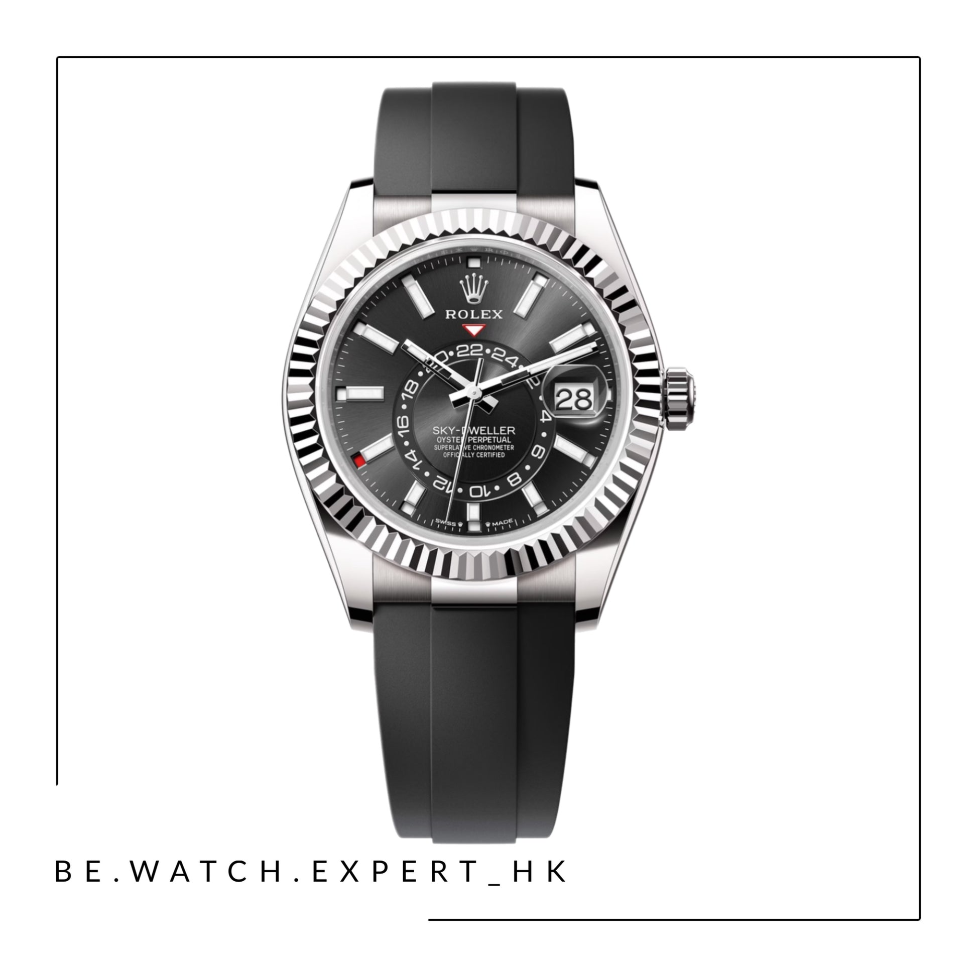 18K白色黃金款,搭配亮黑色錶面及Oysterflex錶帶
