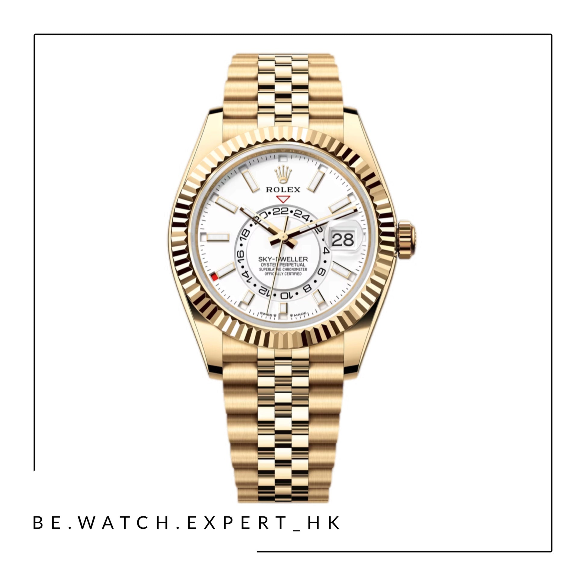 18K黃金款,搭配醇白色錶面及紀念型(Jubilee) 錶帶