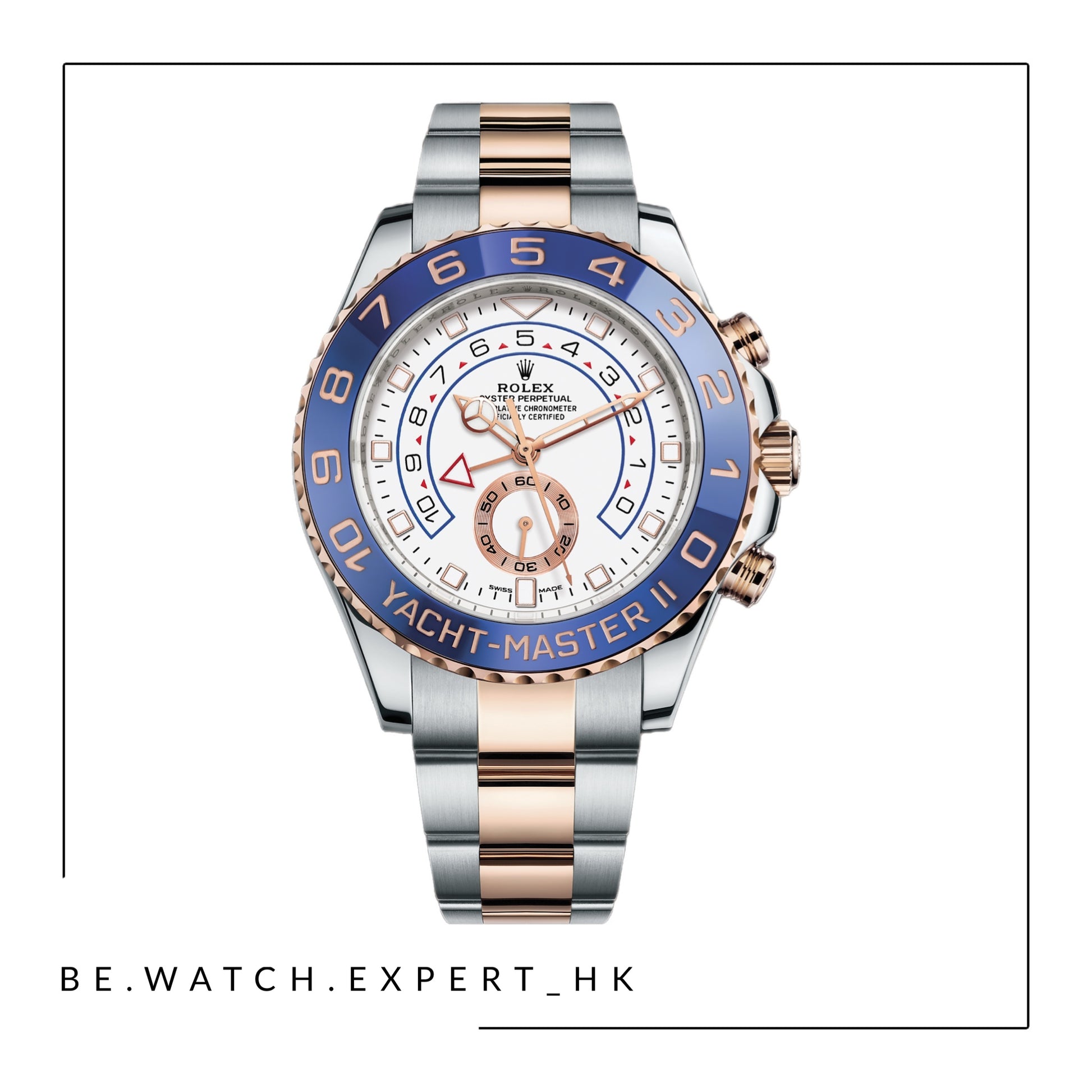 永恒玫瑰金及蠔式鋼款,搭配蠔式錶帶及雙向旋轉外圈配藍色CERACHROM字圈
