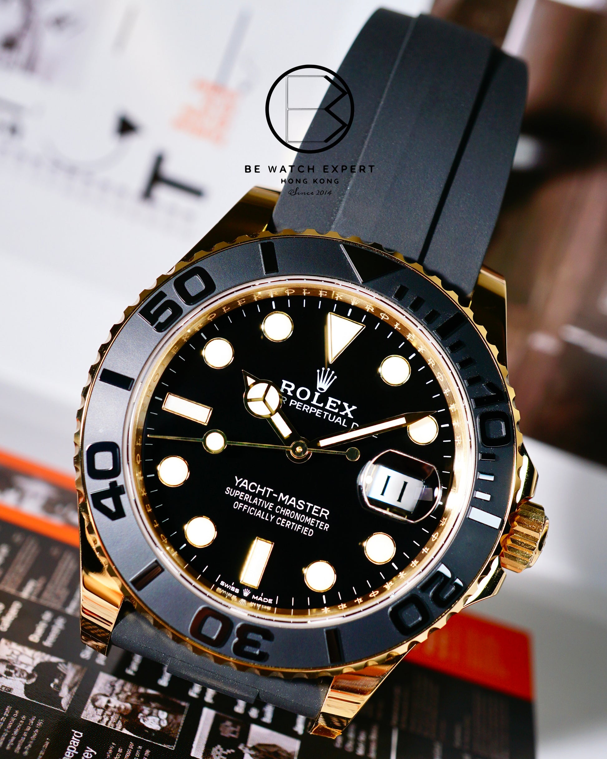 18K黃金款,搭配黑色錶面及OYSTERFLEX錶帶