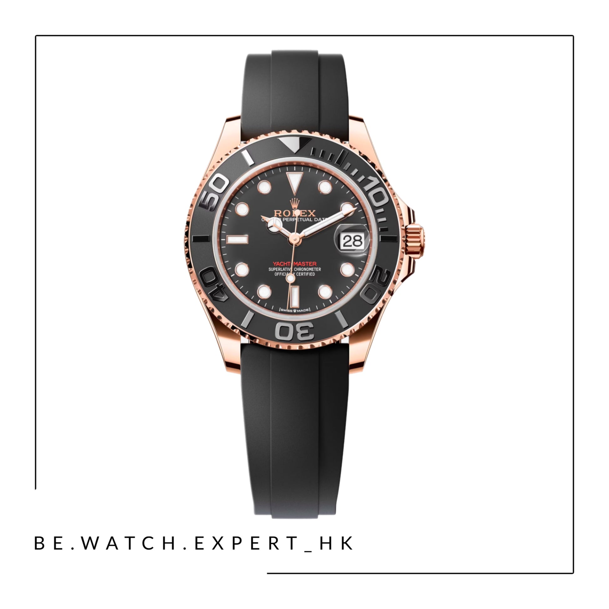 18K永恆玫瑰金款,醇黑錶面及OYSTERFLEX錶帶